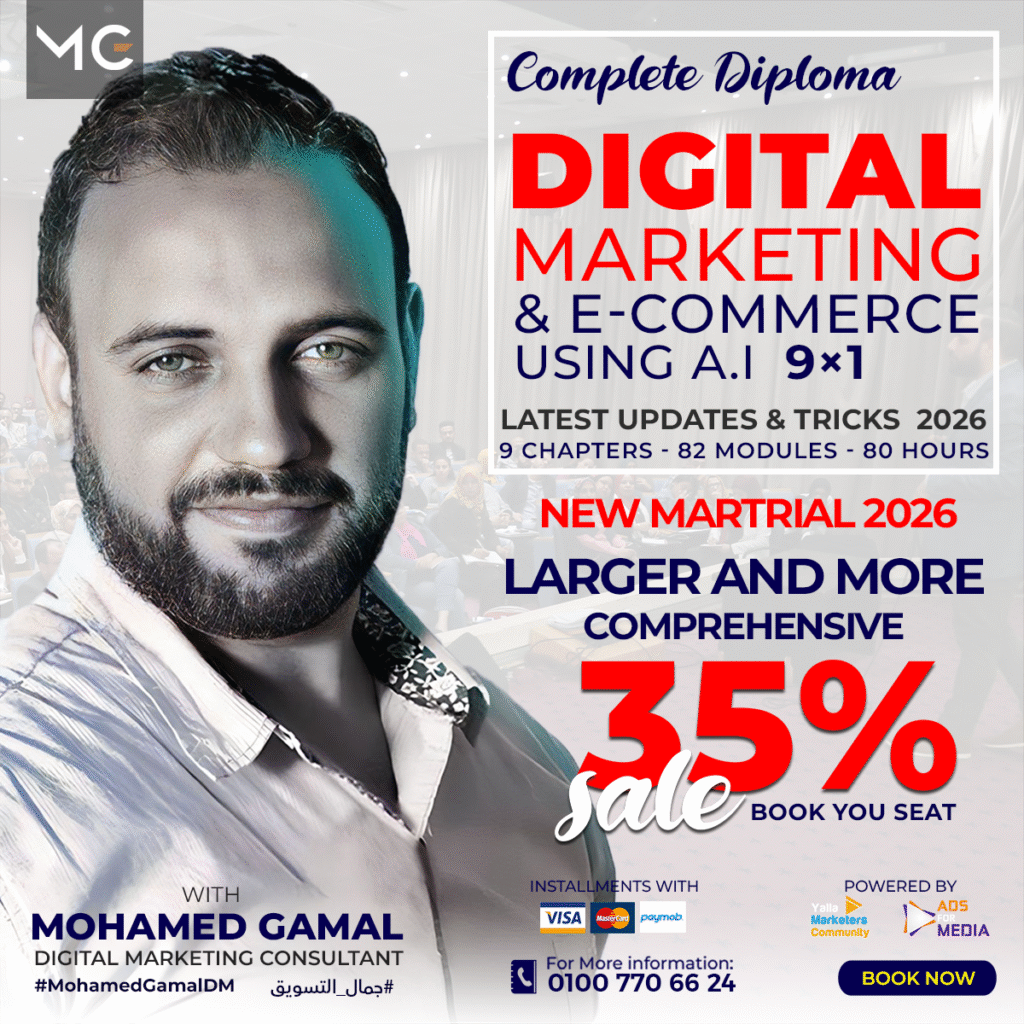 وده أنسب وقت تتعلم وتحترف مهارات التسويق والتسويق الإلكتروني، وأحتراف الإعلانات بقواعد اللعبة والأستراتيجيات الجديدة، بآخر التحديثات وكل ده في أكبر وأشمل دبلومة متكاملة 9×1